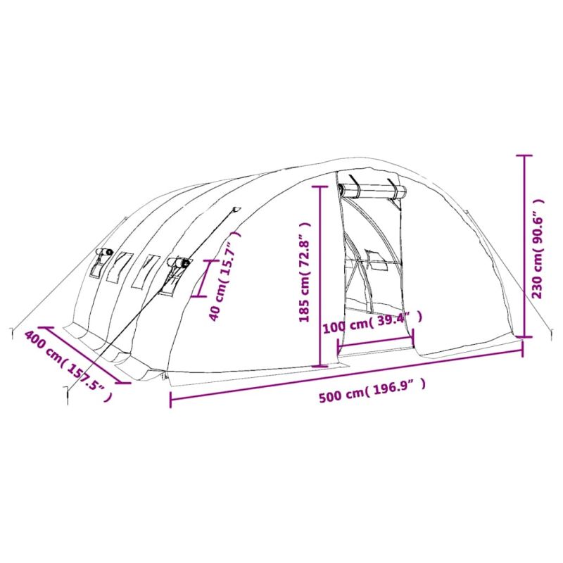 Оранжерия със стоманена рамка, бяла, 20 м², 5x4x2,3 м