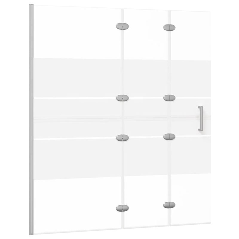 Отличаващ се с елегантен дизайн, този сгъваем душ параван ще бъде наистина удобно за ползване допълнение към вашата баня. Алуминиевата рамка и панелите от ESG (еднослойно защитно стъкло) придават изчистен вид, гарантирайки безопасност под душа. В допълнение, този душ параван има и сгъваем дизайн за лесен достъп. Забележка: Бялата лента има единствено декоративна цел.