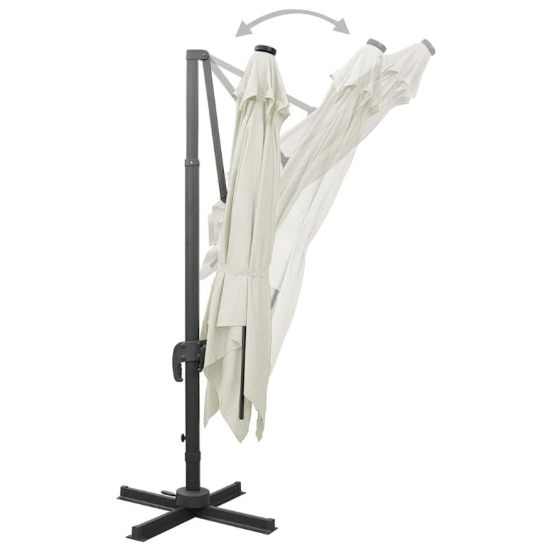 Конзолен градински чадър с прът и LED светлини, пясъчен, 300 см
