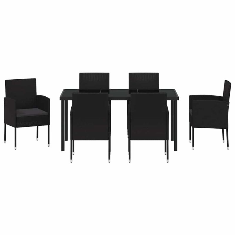 Комплект за хранене в градината 7 pcs Черно полиратан
