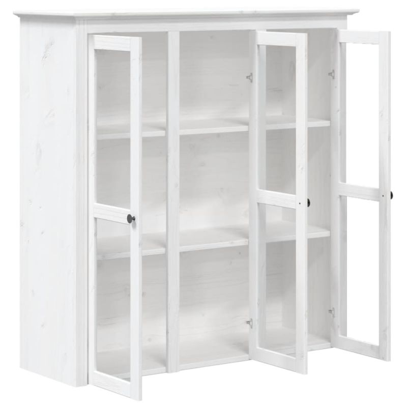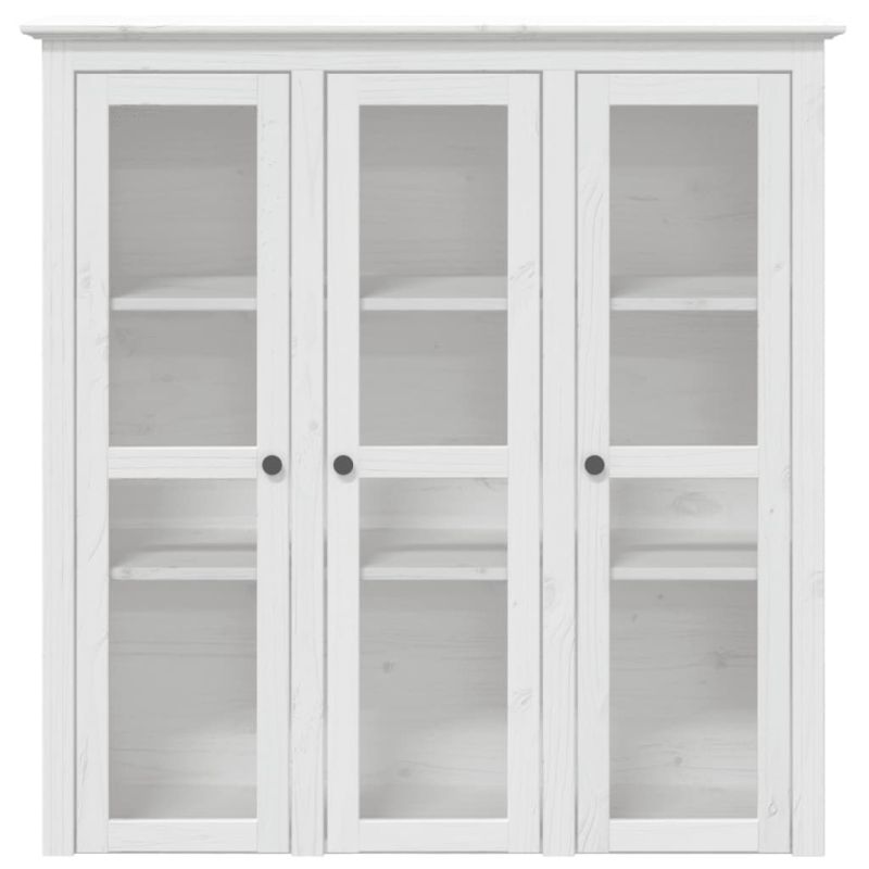 Шкаф със стъклени врати BODO, бял, бор масив