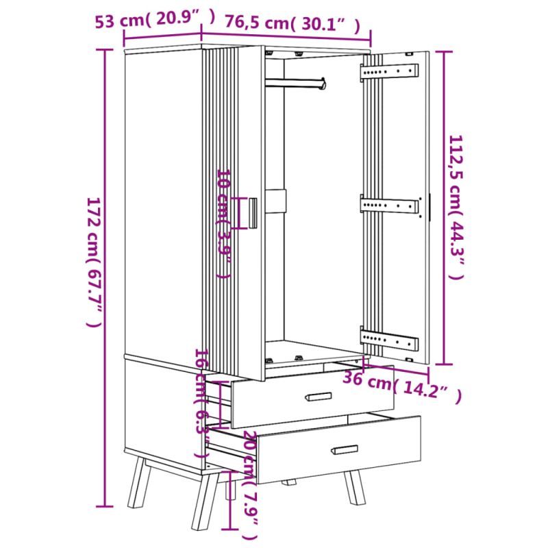 Гардероб OLDEN, сив и кафяв, 76,5x53x172 см, борово дърво масив