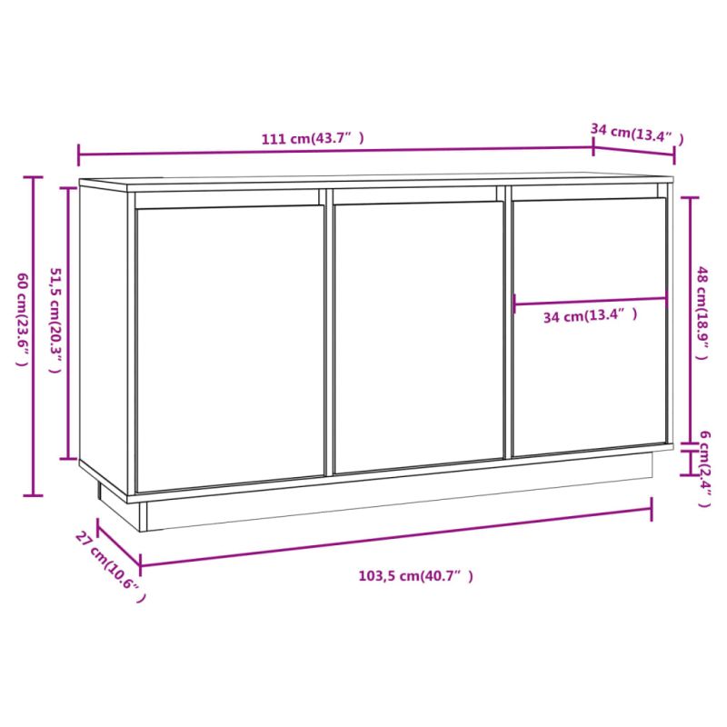 Сайдборд, 111x34x60 см, бор масив