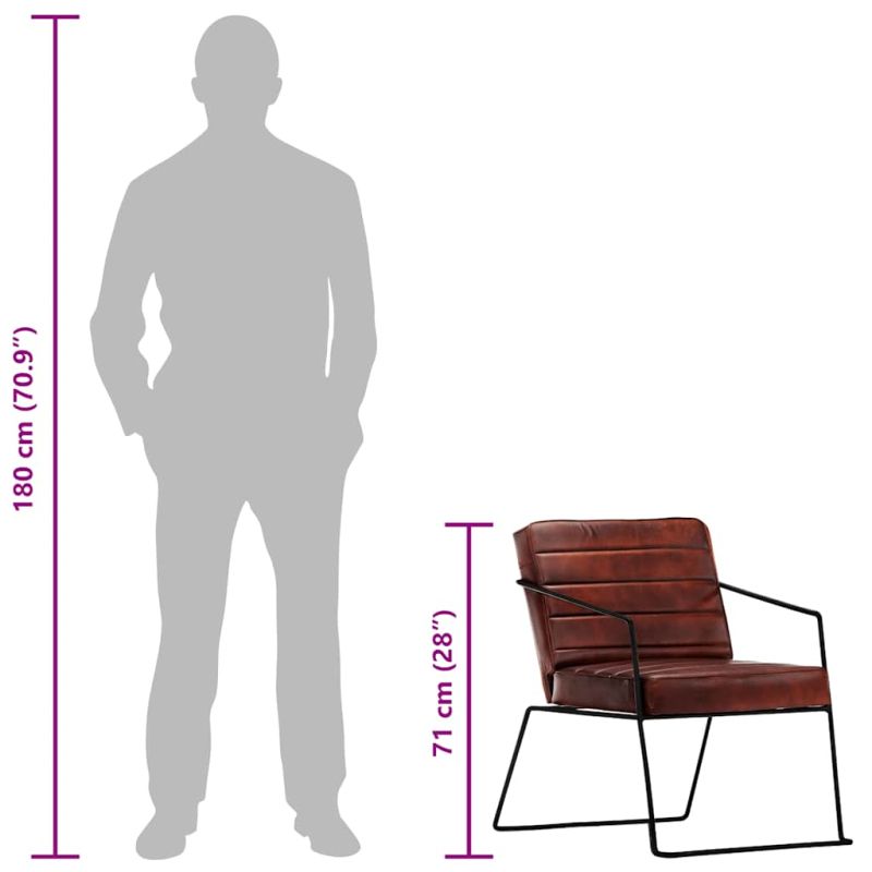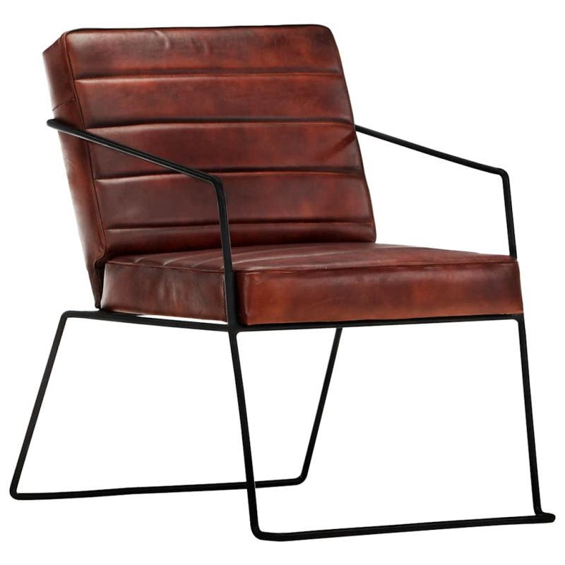 Този изключително удобен фотьойл от естествена кожа се отличава с изчистен дизайн, с което ще се превърне в любимото ви място за разговори, четене, гледане на телевизия или просто за почивка. Изработен от естествена кожа, фотьойлът не само придава щрих на лукс към вашия дом, но ви осигурява и допълнителен комфорт. В допълнение, прахово боядисаната стомана допълва неговата здравина и излъчва индустриален чар. Благодарение на подлакътниците и плътно подплатената тапицерия от естествена кожа, столът е изключително удобен. Фотьойлът се сглобява лесно. Максимално 110 кг на седалка. Съобразете се с риска от открит огън и други източници на силна топлина в близост до продукта.