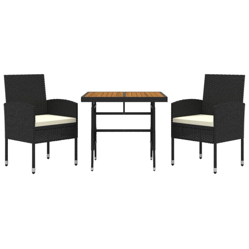Градински трапезен комплект, 3 части, полиратан, черен