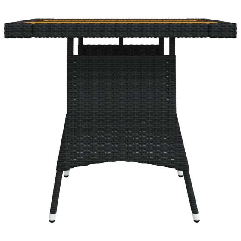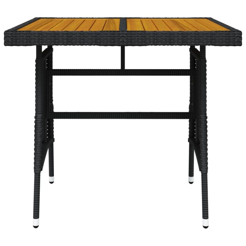 Градинска маса, черна, 70x70x72 см, полиратан и акация масив