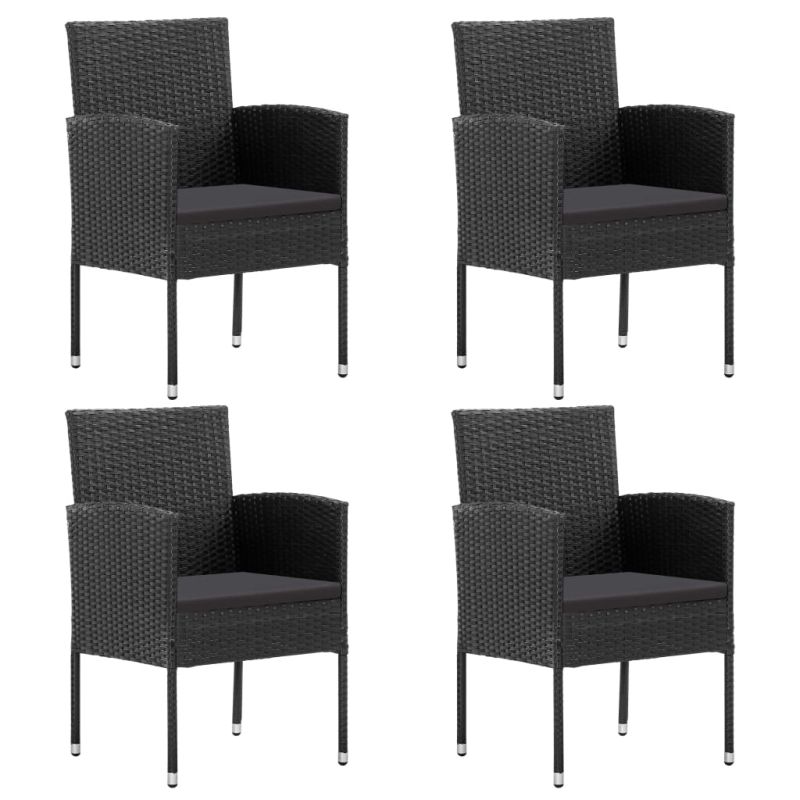 Начало Дом и градина Мебели Външни мебели Външно обзавеждане Градински столове Градински столове с черни възглавници, 4 бр, черен полиратан