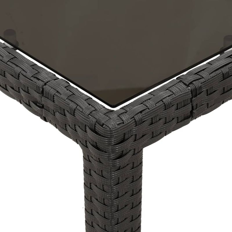 Този градински трапезен комплект е чудесен избор за вечеря на открито или просто за почивка в градината, задния двор или вътрешния двор. Издръжлив материал: PE ратан, известен също като полиратан, е здрав синтетичен материал с малко необходима поддръжка, който прилича на естествен ратан. Той е лек, лесен за почистване и често се използва за външни мебели поради своята издръжливост и устойчивост на атмосферни влияния.Удобна седалка: Тази мебел за открито, снабдена с плътно подплатени възглавници, предлага удобство при сядане.Калъф, който може да се сваля и може да се пере: Тези възглавници за седалки имат подвижни калъфи за лесно пране и поддръжка.Стъклен плот: Плотът на външната маса е изработен от здраво и издръжливо закалено стъкло, което улеснява почистването с влажна кърпа и добавя нотка елегантност към вашето външно пространство.Здрава и стабилна рамка: Стоманената рамка с прахово покритие гарантира, че градинската мебел е здрава и стабилна за ежедневна употреба на открито. Добре е да се знае:За да сте сигурни, че вашите външни мебели ще останат красиви, ви препоръчваме да ги защитите с водоустойчиво покривало. Максимално 110 кг на седалка. Съобразете се с риска от открит огън и други източници на силна топлина в близост до продукта.
