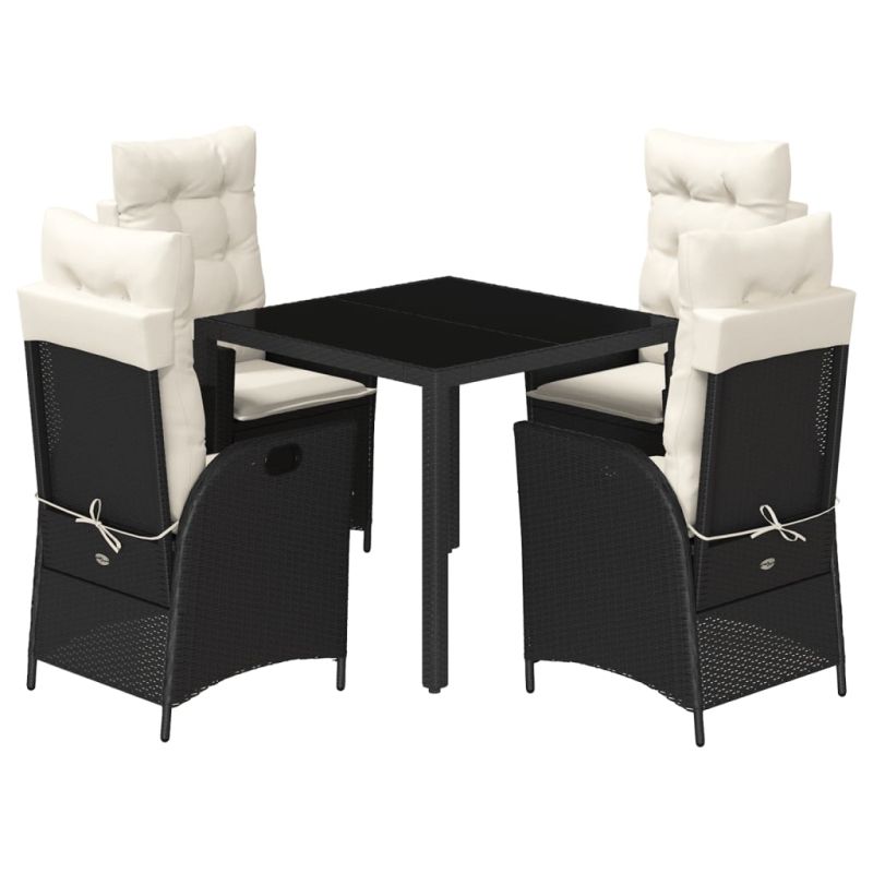 Градински трапезен комплект възглавници 5 части черен полиратан