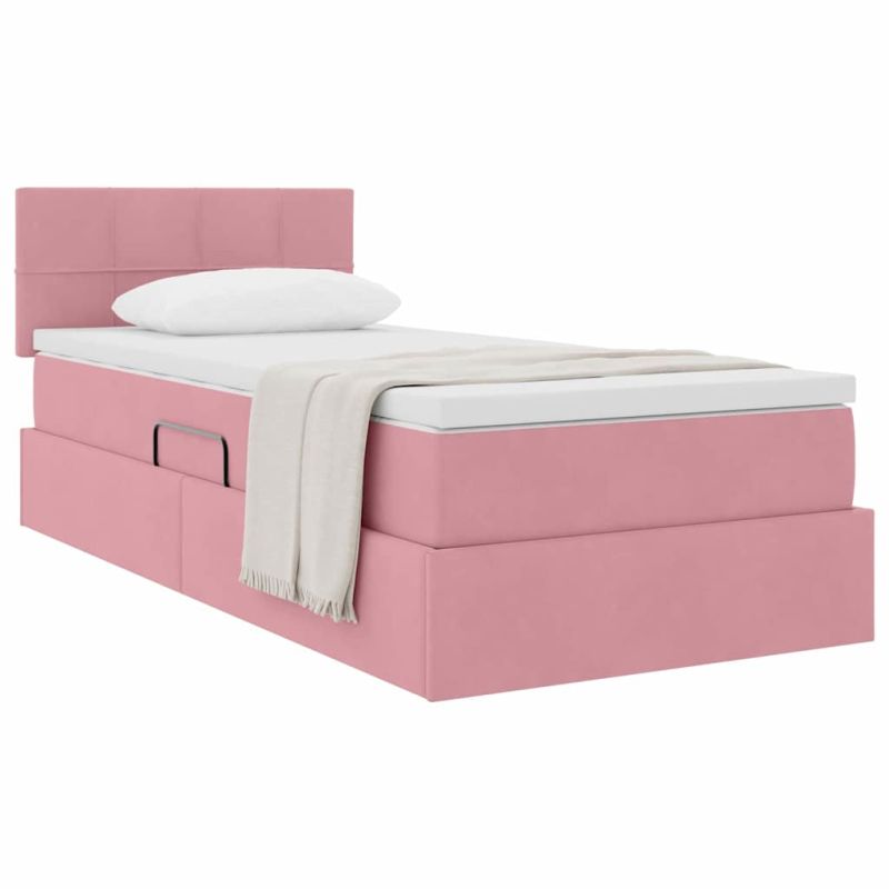 Легло с място за съхранение с матрак Розово 100 x 200 cm Кадифе