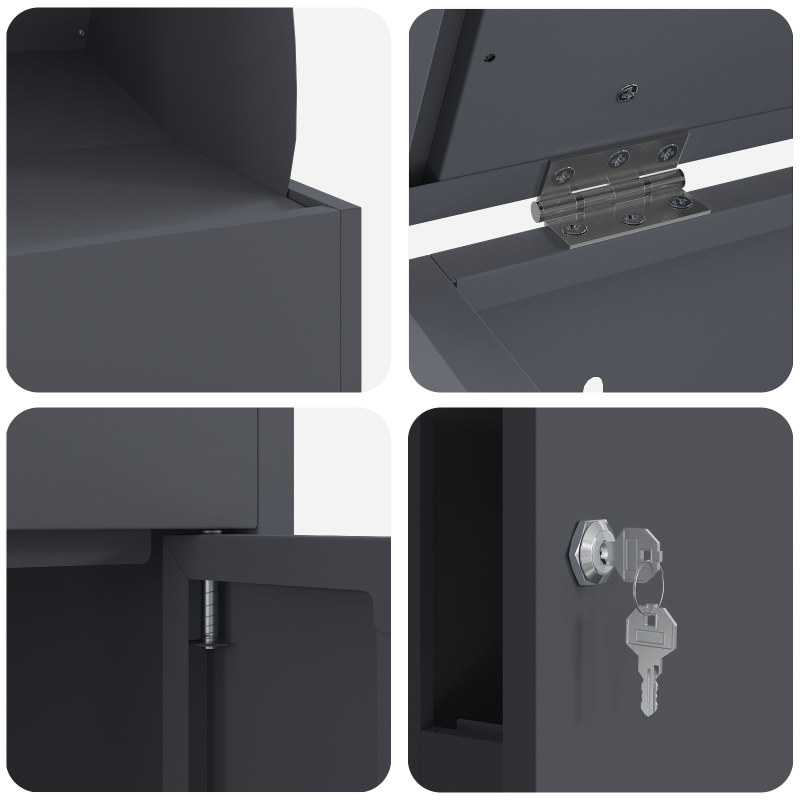 Outdoor Parcel Drop Box е идеалното функционално допълнение за вашата градина или тераса. Със своя елегантен и модерен вид, тя носи стил и сигурност в дома ви. Изработена е от здрава стомана, за да издържа на времето, предлагаща надеждно място за получаване и съхранение на доставките. Правоъгълната й форма съчетава форма и функция, ставайки страхотен избор за всеки, който иска нещо практично. Здрава стоманена конструкция Изработена от стомана, тази кутия осигурява дълготрайност и здравина. Устойчивостта й на времето предпазва пакетите от повреди и гарантира тяхната безопасност. Заключваща ключалка С ключалката си, програма ви предоставя допълнителна сигурност. Тя е проектирана да устои на опити за кражба, така че вашите пакети да са safe, докато не ги вземете. Ключовият механизъм предлага спокойствие, когато стоките са на път. Водоотблъскващи материали Outdoor Parcel Drop Box е създадена, за да предпазва доставките от лошото време. Без значение дали е дъжд, сняг или ярко слънце, вашите пакети остават на сухо, докато чакате да ги донесете вкъщи. Идеална за целогодишна употреба. Лесен достъп Сребристите дръжки на ключалките осигуряват прост и удобен достъп при вземането на пакети. Те съчетават практичност и стил, улеснявайки отварянето и затварянето на кутията. Простота в поддръжката Поддържайте кутията си в отлично състояние с лесни грижи. Просто я избърсвайте с влажна кърпа, за да премахнете прах и мръсотия. Това гарантира, че остава свежа и дълготрайна част от вашата външна декорация.