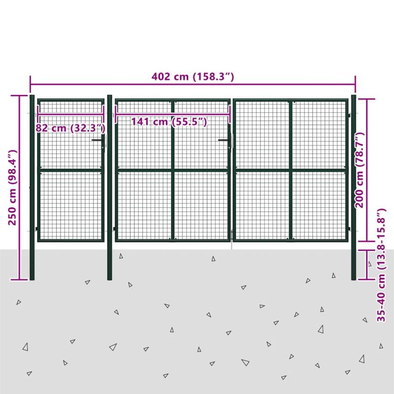 Градинска порта, стомана, 400x200 см, зелена