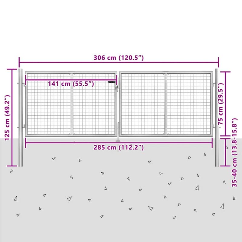Градинска порта, поцинкована стомана, 300x75 см, сребриста