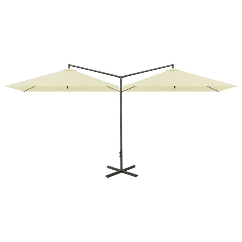 Двоен градински чадър със стоманен прът, пясъчен, 600x300 см