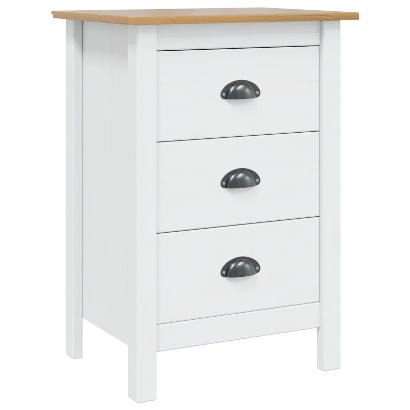 Нощен шкаф Бяло и медено кафяво 46 x 35 x 65 см Солиден бор
