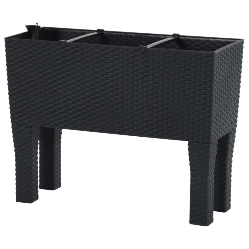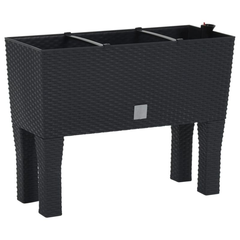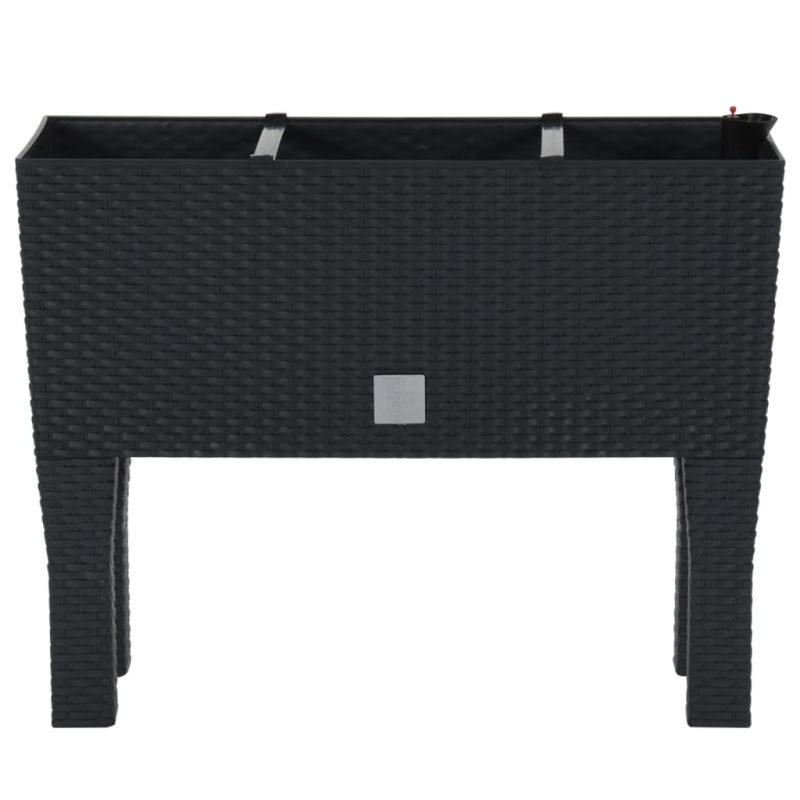 Това задължително повдигнато градинско легло би било чудесен избор за всеки любител на Направи си сам, за да украси градината, балкона и вътрешния си двор. Издръжлив материал: Повдигнатото легло е изработено от издръжлив полипропилен с вид на ратан. То е устойчиво на ултравиолетови лъчи и атмосферни влияния, което го прави подходящо както за вътрешна, така и за външна употреба.Достатъчно пространство за растения: Градинската саксия осигурява голямо пространство за засаждане за отглеждане на зеленчуци, билки, цветя и растения.Практична вложка за напояване: Вложката за напояване се използва на дъното на сандъка за цветя. Тя гарантира, че растението получава оптимално поливане и никога не изсъхва. Нивото на водата може да се отчете и директно чрез вградения индикатор за нивото на водата. Забележка:Забележка: За да удължите живота на вашите градински мебели, ви препоръчваме да ги защитите с водоустойчиво покривало.Всеки продукт се доставя с ръководство за сглобяване в кашона за лесно сглобяване.