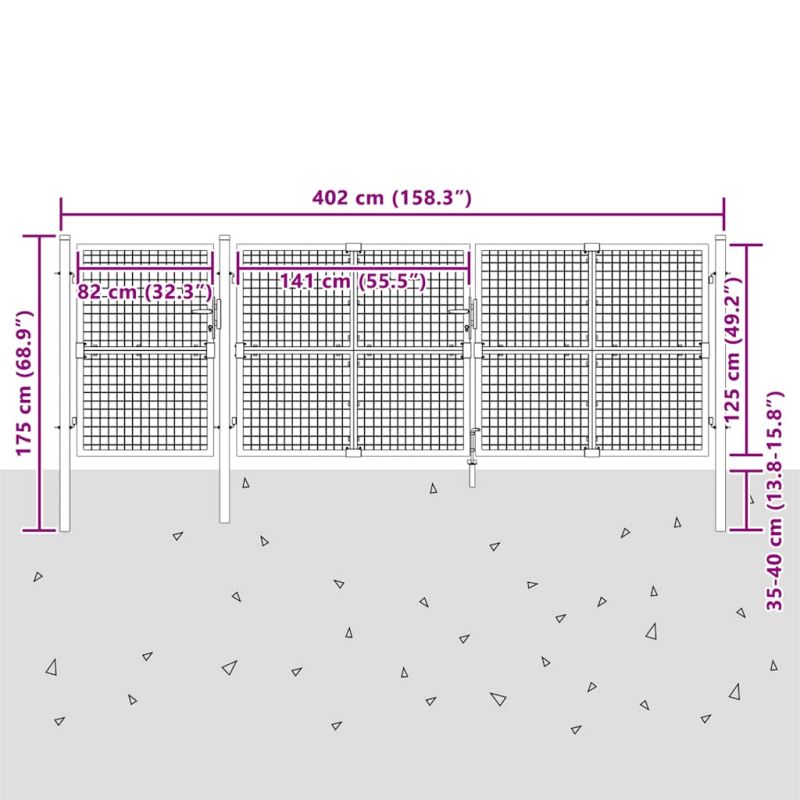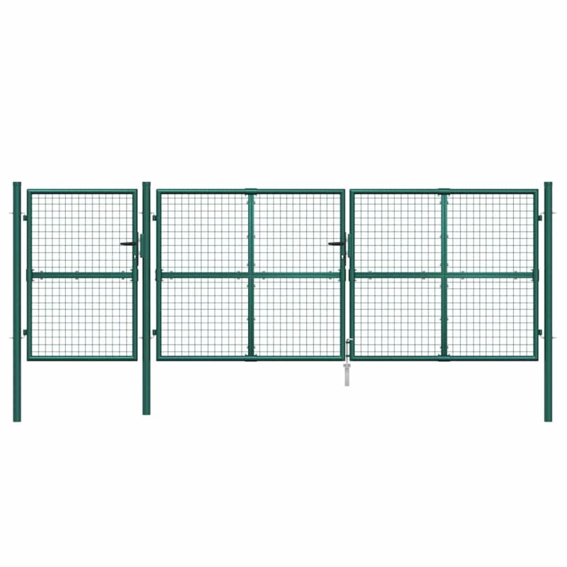 Градинска мрежеста порта, зелена, 400x125 см, поцинкована стомана
