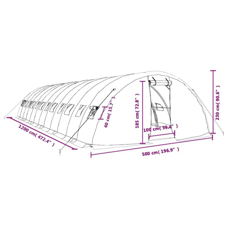 Оранжерия със стоманена рамка зелена 60 м² 12x5x2,3 м