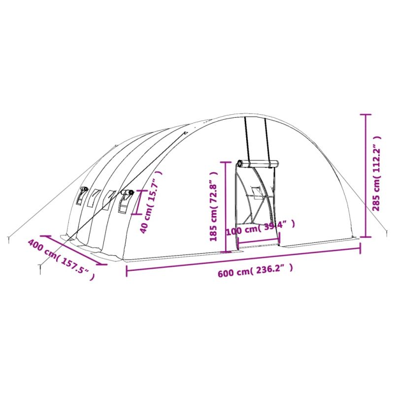 Оранжерия със стоманена рамка, бяла, 24 м², 6x4x2,85 м
