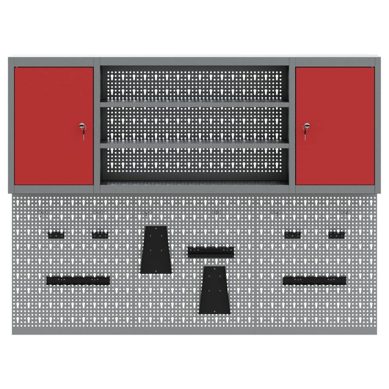 Комплект инструментален шкаф с рафт с заключване 4 pcs Червено