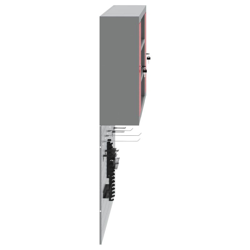 Този универсален комплект за стенен шкаф за инструменти и перфорационна дъска е задължителен за всяка работилница или гараж. С елегантен индустриален дизайн, той носи градски стил с прахово боядисаното желязо и гладкия сив завършек. Предназначен за вътрешна употреба, шкафът предлага надеждно решение за съхранение на инструменти, осигурявайки бърз достъп, а интегрираната перфорационна дъска добавя функционалност с възможност за персонализиране на разпределението на инструментите. Материали: Изработен от здраво прахово боядисано желязо, този комплект шкафове съчетава здравина и стил. Гладката текстура и сивият завършек придават модерен индустриален вид и дълготрайност, а също така се вписват лесно в различни интериорни теми. Обширни компоненти: Комплектът включва метални рафтове от прахово боядисано желязо, осигуряващи стабилно съхранение, което не се отказва при тежест и редовно използване. С перфорационните дъски, потребителите могат лесно да организират инструментите си, оптимизирайки пространството за всякакви видове инструменти. Функционален дизайн и стил: С конструкция, която може да се монтира на стена, шкафът освобождава ценното пространство на пода, което го прави идеален за работилници или гаражи, където е нужна ефективна организация. Това помага в усилията за поддържане на подредено и чисто работно място. Гъвкави възможности за използване: Перфектен за професионални работилници, но и супер удобен за домашни гаражи или DIY пространства. Тази адаптивност позволява на потребителите лесно да се придвижват между различни среди и проекти. Лесни инструкции за поддръжка: Поддържането на шкафа е лесно - просто го бърсиш със суха кърпа, за да запазиш изисканото му изглеждане. Простите стъпки за почистване гарантират продължително задоволство и дълготрайност на шкафа.