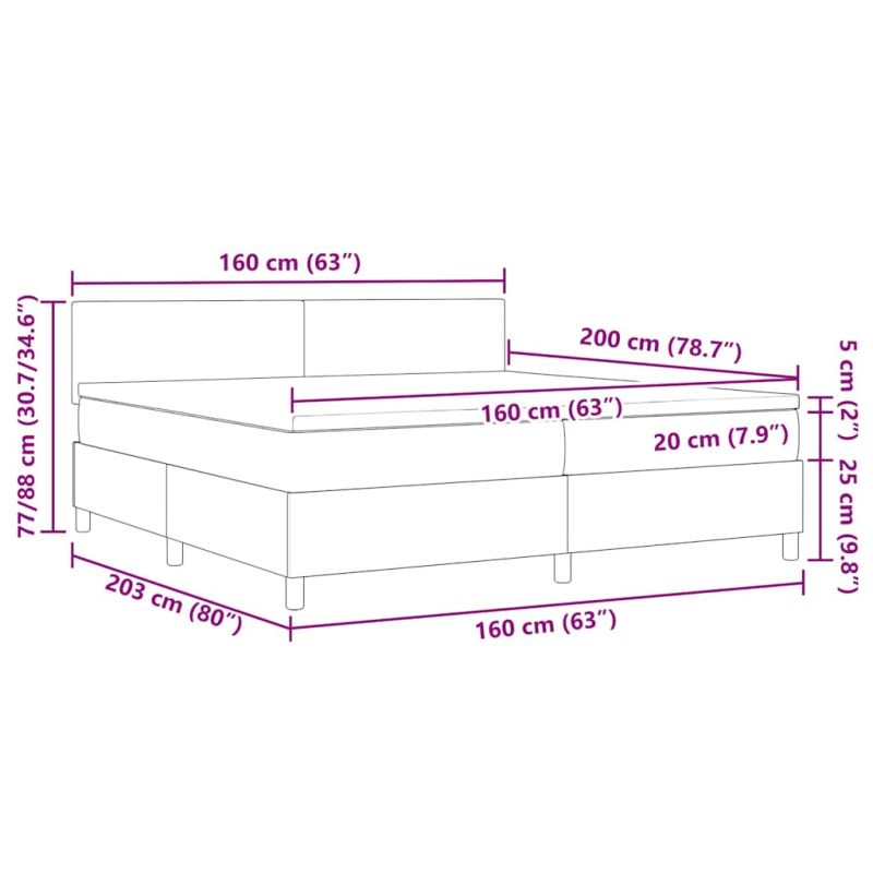 Легло с пружинирана основа Тъмен сив и бял 160 x 200 cm