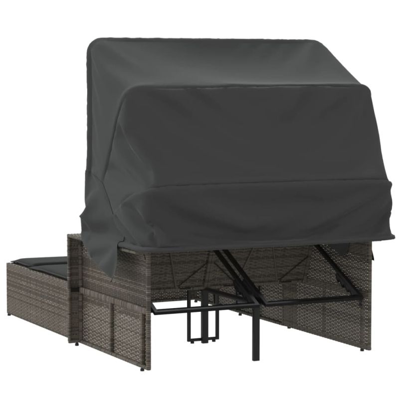 Двоен шезлонг със сенник и възглавници сив полиратан