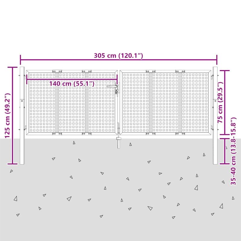 Градинска порта, антрацит, 300x75 см, стомана
