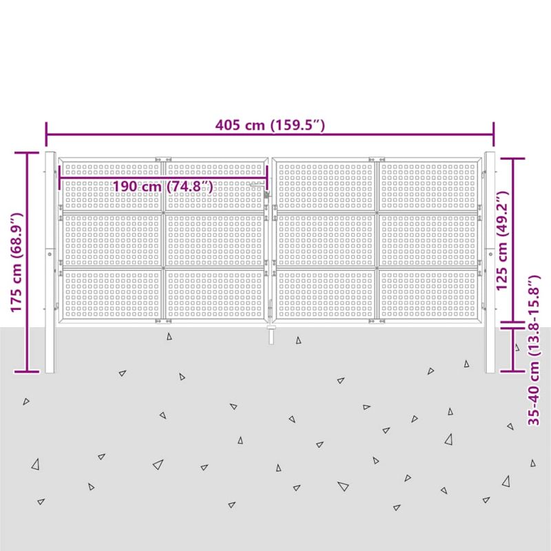 Градинска порта, антрацит, 400x125 см, стомана