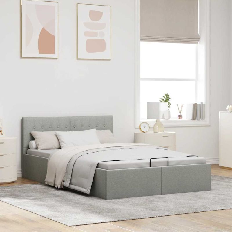 Легло с повдигащ механизъм, светлосиво, текстил, 120х200 см