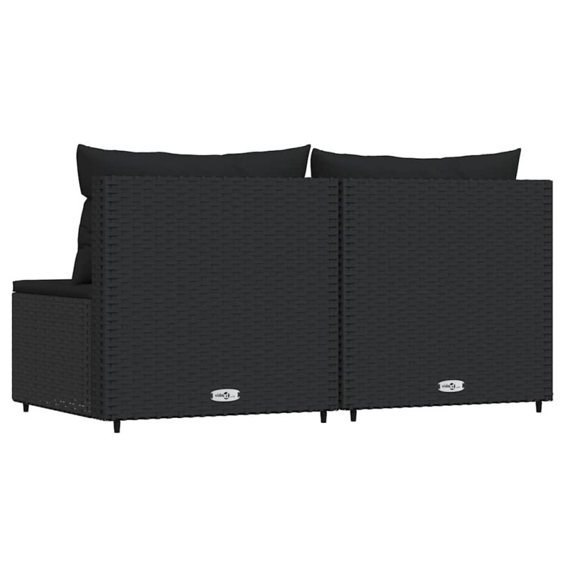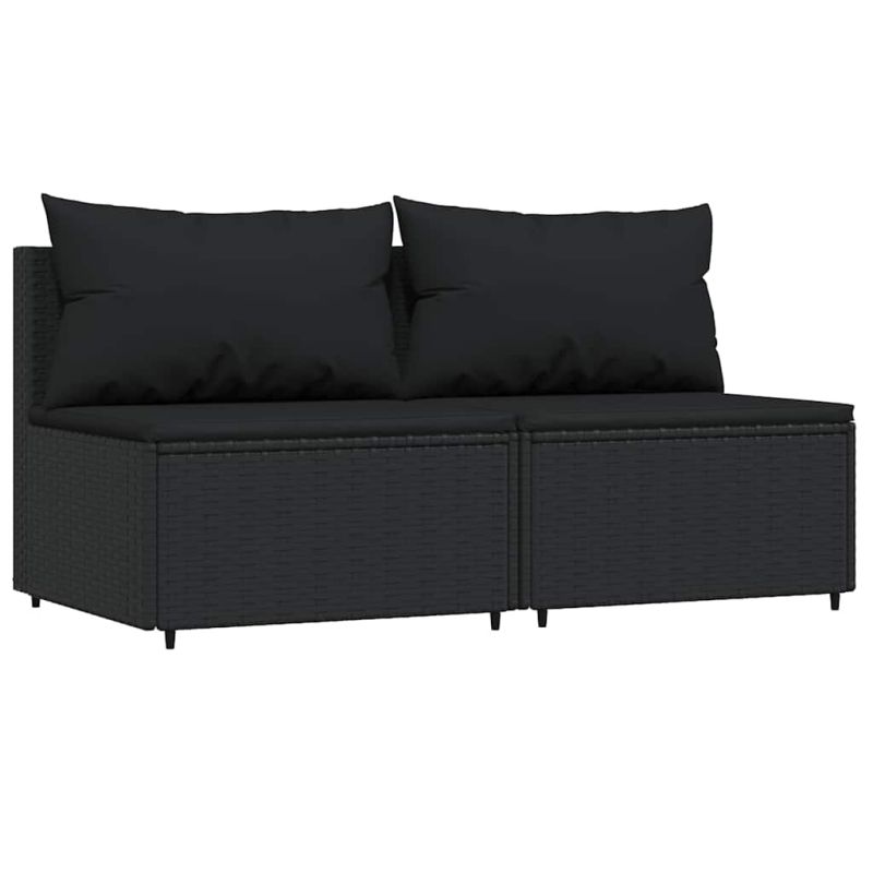 Градински средни дивани с възглавници, 2 бр, черни, полиратан