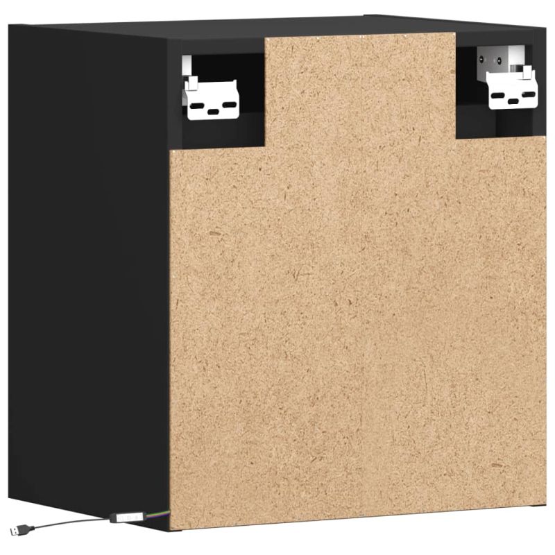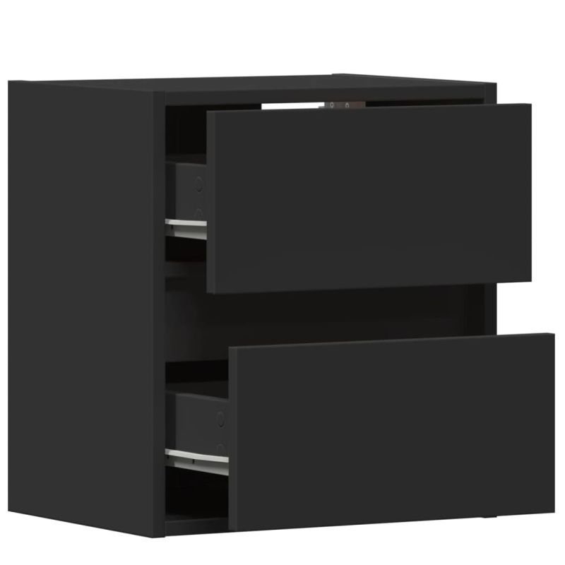 Нощно шкафче за стена с LED светлини, черно