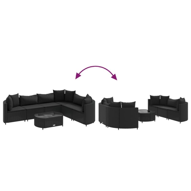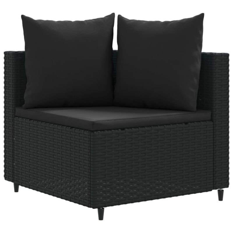 Градински комплект диван с възглавници 7 части черен полиратан