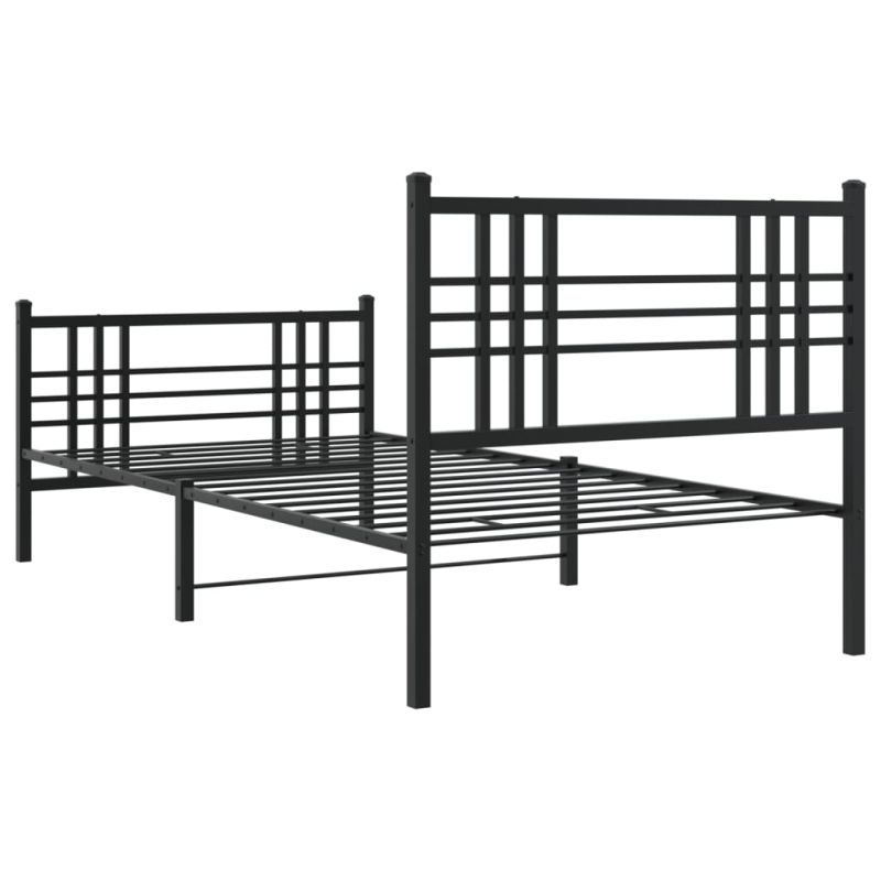 Метална рамка за легло с горна и долна табла, черна, 90x200 см