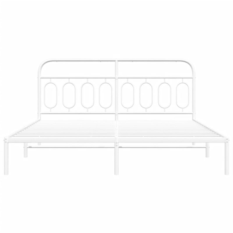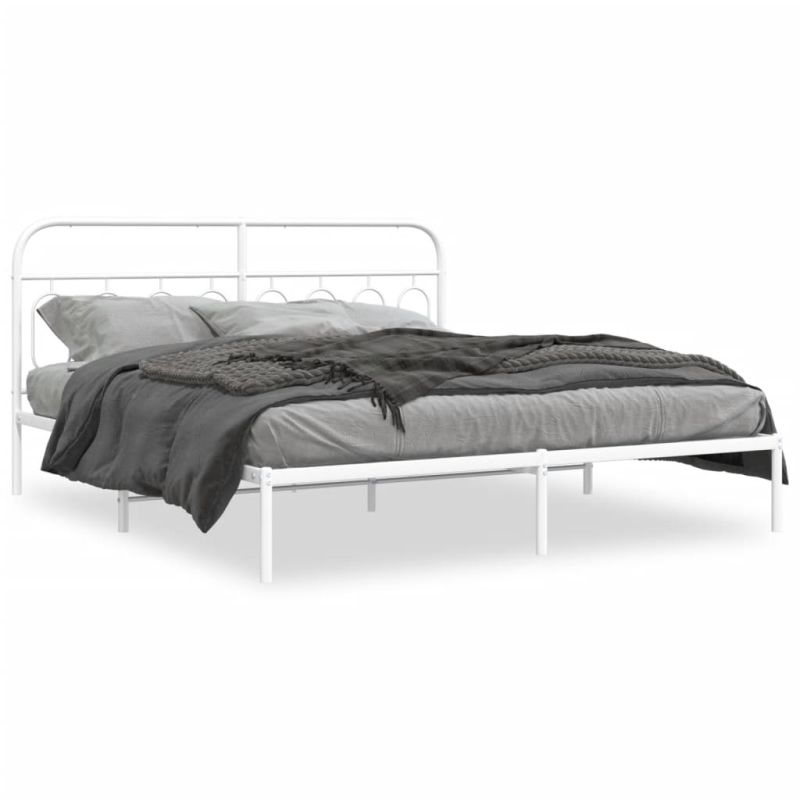 Метална рамка за легло с горна табла, бяла, 160x200 см