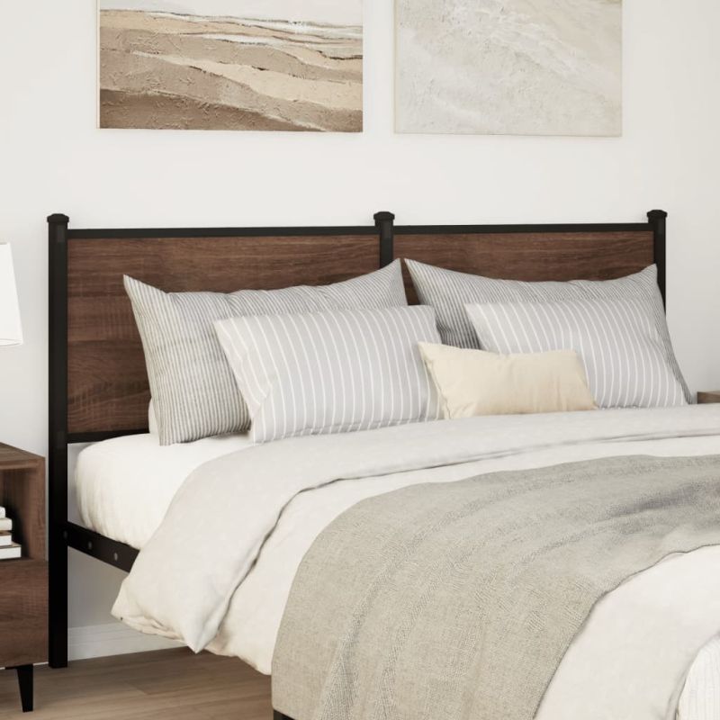 Резервна табла за легло, кафяв дъб, 135 см, инженерно дърво и стомана
