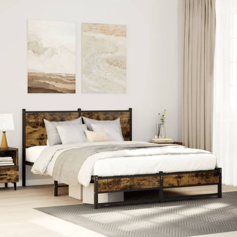 Метална рамка за легло, без матрак, опушен дъб, 150x200 см