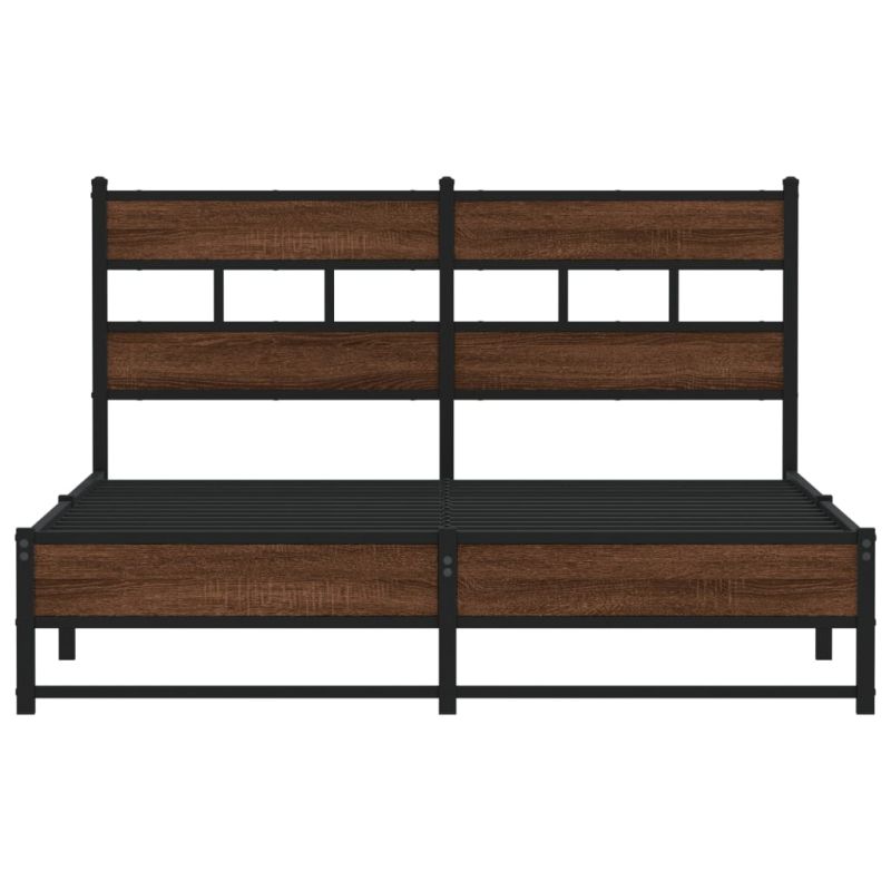 Метална рамка за легло, без матрак, кафяв дъб, 135x190 см