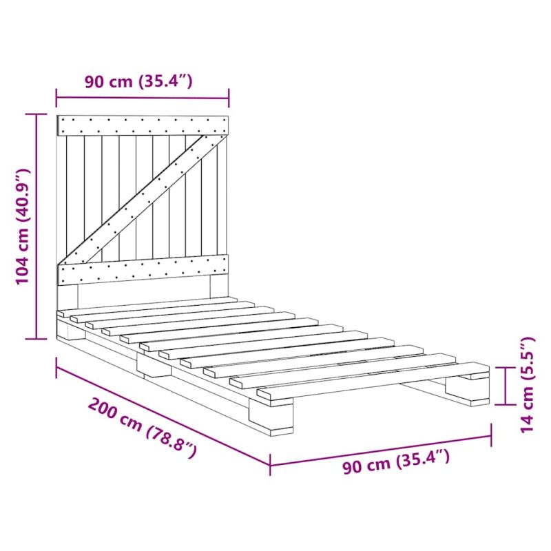 Рамка за легло с табла, 90x200 см, борово дърво масив