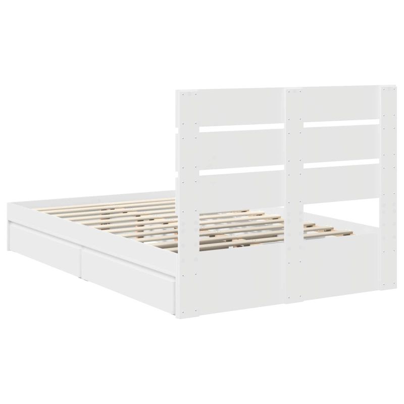 Легло с място за съхранение Бяло 135 x 190 cm Инженерно дърво