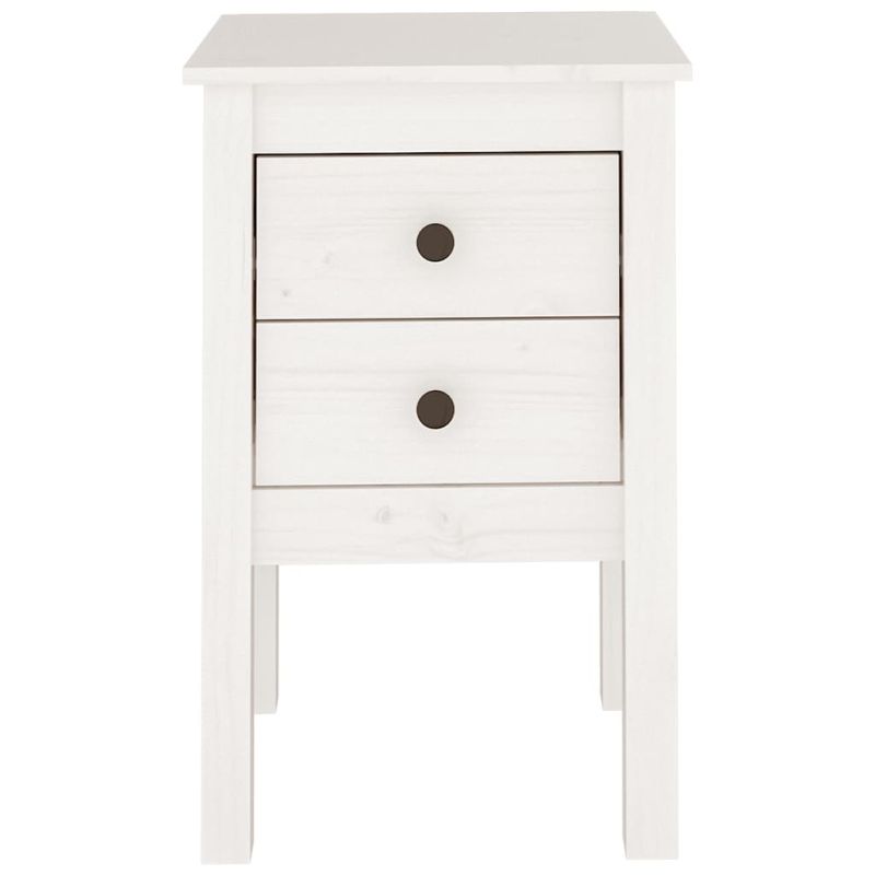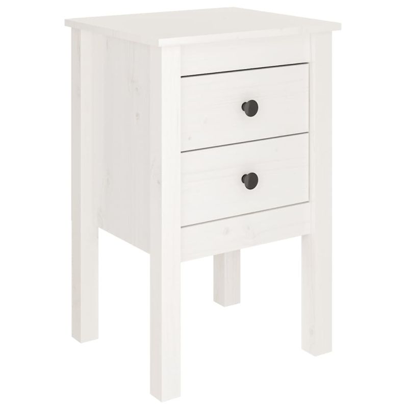 Нощно шкафче, бяло, 40x35x61,5 см, борово дърво масив