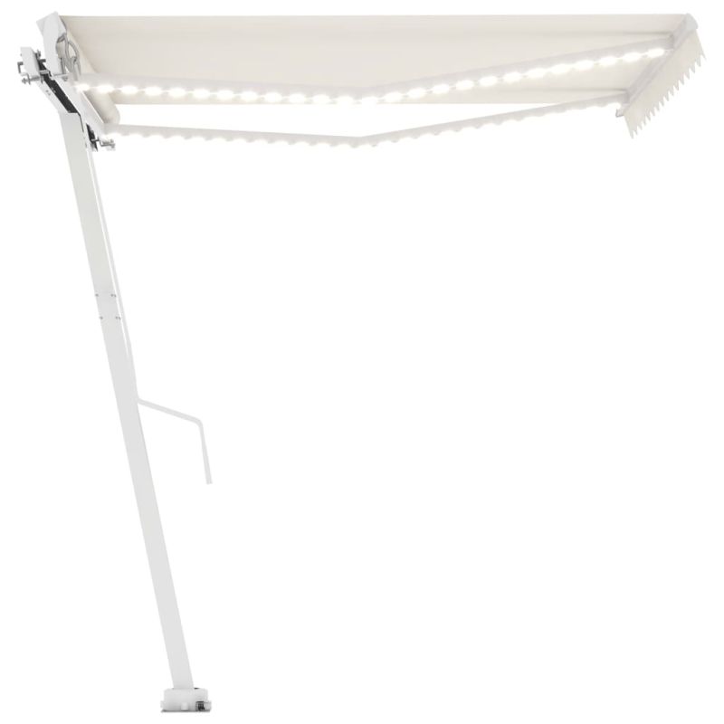 Ръчно прибиращ се сенник с LED, 350x250 см, кремав