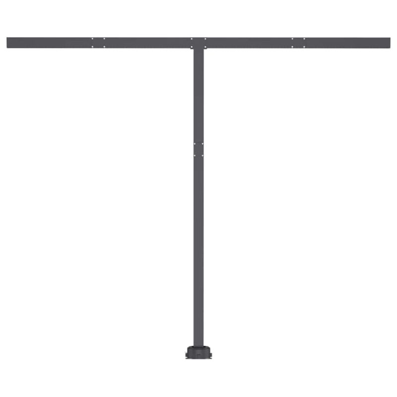 Създайте красиво и прохладно местенце отвън с тази прибираща се тента! Изработена от устойчива на ръжда алуминиева рамка с прахово покритие, тази външна тента е лека, но здрава. Платът на тентата е изработен от полиестер с висока плътност с PU покритие, което е UV и водоустойчиво. Освен това ъгълът и височината могат да се регулират, за да отговарят на вашите специфични нужди. Можете да отваряте и прибирате свободностоящата тента безпроблемно с дългата ръчна манивела. Здравата основа може да се върти на 360 градуса, осигурявайки максимални нужди от регулиране. Опасност! Силен отскок при отваряне. НЕ сваляйте това въже, освен ако не сте приключили с всички стъпки на сглобяване. Всички болтове трябва да са затегнати и елементът да е прикрепен към стената! Предупреждение! Внимавайте, когато разхлабвате рамената, защото те са под напрежение! Внезапното освобождаване на рамо на сгъваема тента може да причини нараняване. Внимание: Инструкциите за ползване трябва да бъдат прочетени преди употребата на продукта. Предупреждение: Работата в студени условия може да повреди продукта. Външна употреба в сгради и други строителни обекти. GPSR