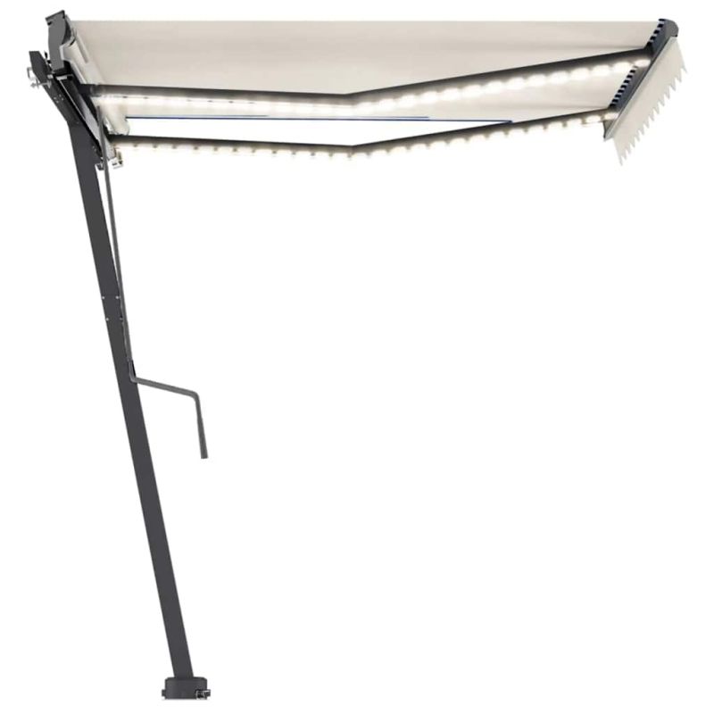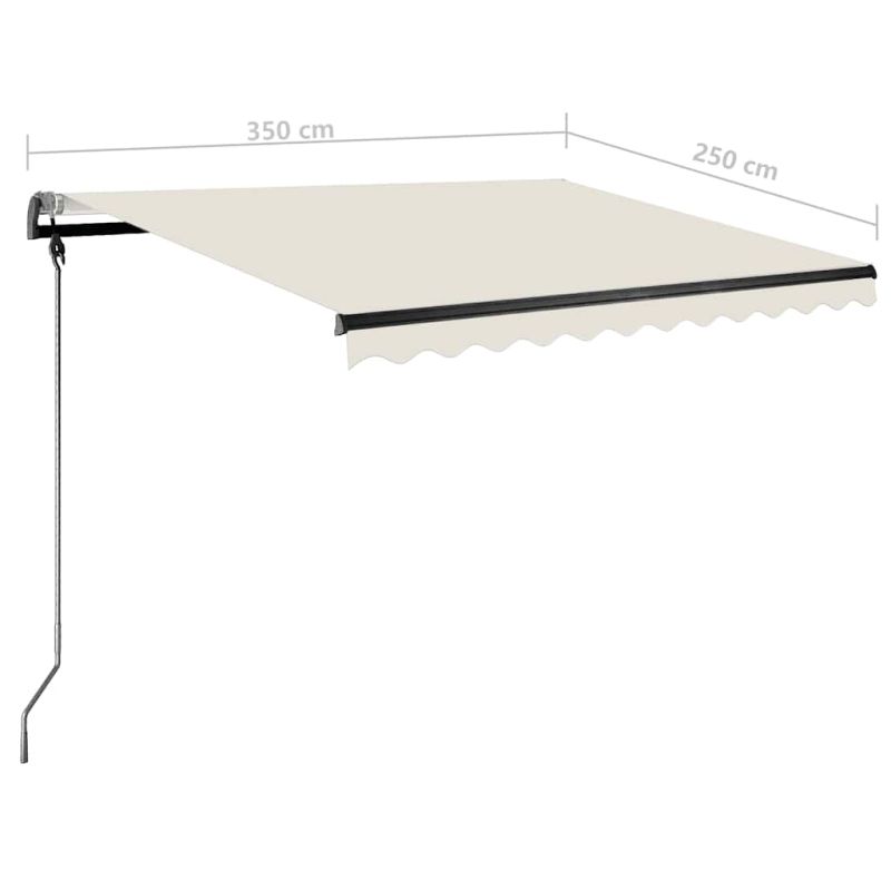 Ръчно прибиращ се сенник с LED, 350x250 см, кремав