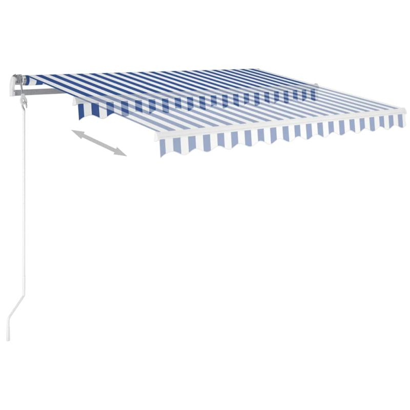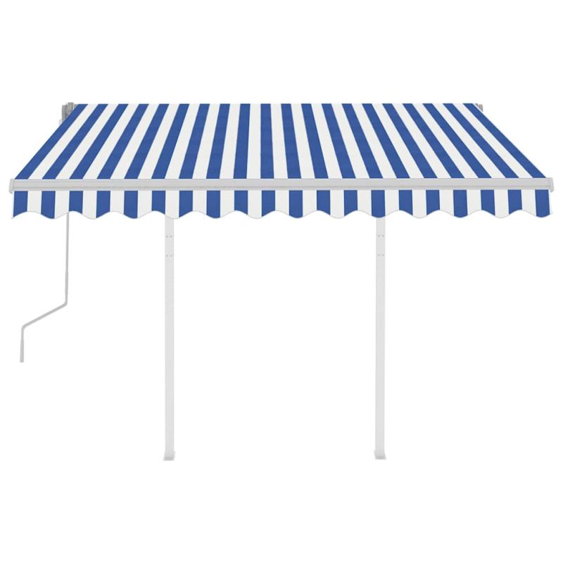 Ръчно прибиращ се сенник с прътове, 3x2,5 м, синьо и бяло