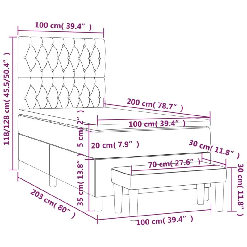 Използвайте това боксспринг легло, за да се насладите на спокоен сън! Предлага ви максимален релакс и приятен сън. Издържлива тъкан: Тъканта се отличава със семпъл и изчистен вид и е дишаща и издръжлива.Практична табла за глава: Горната табла за легло се регулира на височина според вашите предпочитания. Горната част на леглото ви осигурява отлична опора за гърба, докато седите в леглото, за да четете или гледате телевизия.Покет пружинен матрак: Вградените индивидуални покет пружини са известни с много високото си качество, като същевременно осигуряват високо ниво на издръжливост и адаптивност. Те могат ефективно да абсорбират шума и ударите, причинени от мятане и въртене.Средно твърда поддръжка: Матракът за легло перфектно осигурява допълнителна стабилност и точното ниво на твърдост, без да се жертва комфорта. Така той е идеален за спящи по гръб или корем.Благоприятен за кожата топ матрак: Протекторът за матрак има издръжлива, както и щадяща кожата материя, което я прави мека и удобна.Многофункционална пейка: Тази пейка може да служи като допълнително място за сядане във вашия дом. Също така може да се използва като пейка в края на легло. Забележка:От хигиенни съображения матракът не може да бъде върнат, ако опаковката е отстранена или отворена.Всеки продукт се доставя с ръководство за сглобяване в кашона за лесно сглобяване.