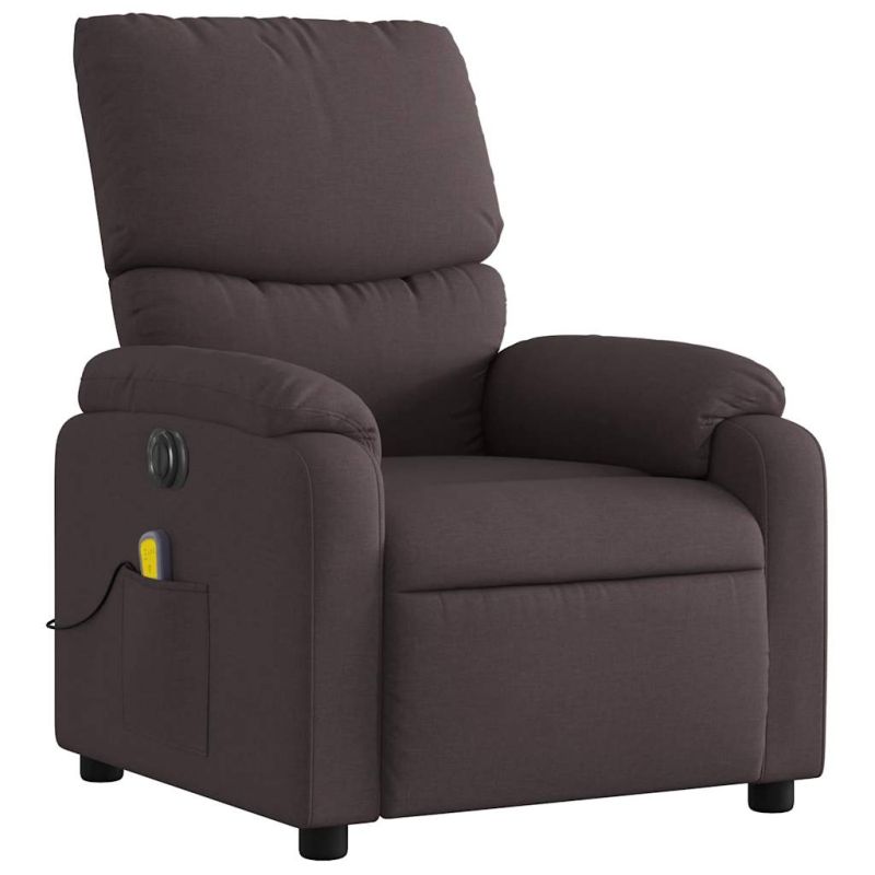 Електрически масажен наклоняем стол, тъмнокафяв, текстил