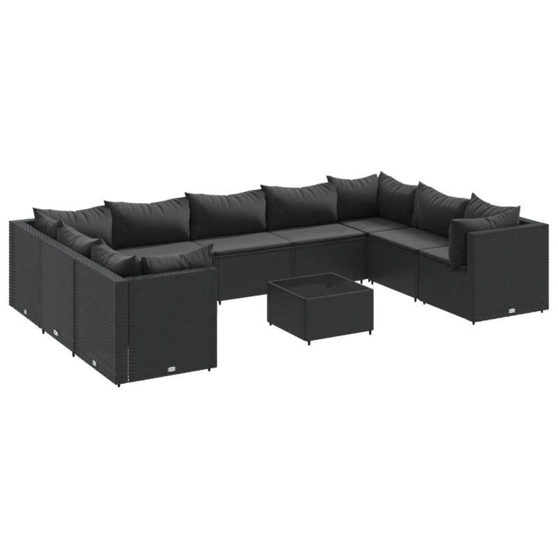 Градински лаундж комплект с възглавници 10части полиратан черен
