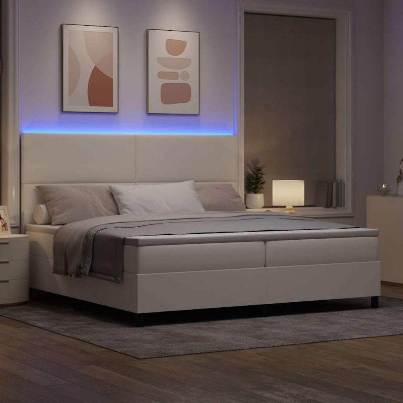 LED кутия за пружини с легло Слонова кост и бяло 200 x 200 cm