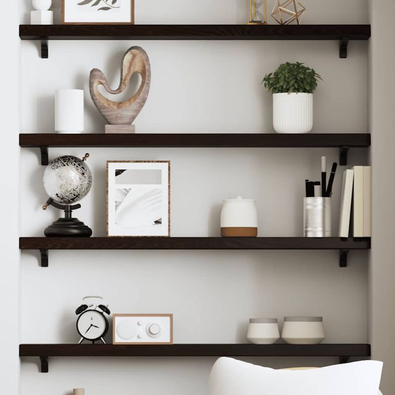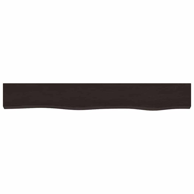 Нуждаете се от повече опции за съхранение, а нямате свободно място? Този стенен рафт в стил рустик е идеалното решение. Издръжлива конструкция: Стенният рафт е изработен от масивна дъбова дървесина, която е красив естествен материал. Дъбовата дървесина има среднокафяв цвят и плътна структура, което допринася за уникалния ѝ вид.Разнообразни приложения: Освен като рафт, този рафт за съхранение може да се комбинира с различни основи според вашите нужди. Може да се използва като плот за баня, плот за шкаф, плот за бюро, плот за маса и др.Обработена повърхност: Дървеният рафт е обработен с тъмна боя, така че е готов за употреба, тъй като не е необходимо допълнително покритие.Ръчно изработена с жив ръб: Тази дъска за етажерка е ръчно изработена с жив ръб. Тъй като възлите, пукнатините, леко извитите форми и цветовите нюанси са част от дъбовата дървесина, всеки рафт има свой собствен уникален характер. Доставката е на случаен принцип, което гарантира ексклузивността и индивидуалността на вашия продукт. Добре е да се знае:Като естествен продукт, дървото може да има възли и несъвършенства, които ние запълваме с черни пълнежи, за да осигурим гладък външен вид.